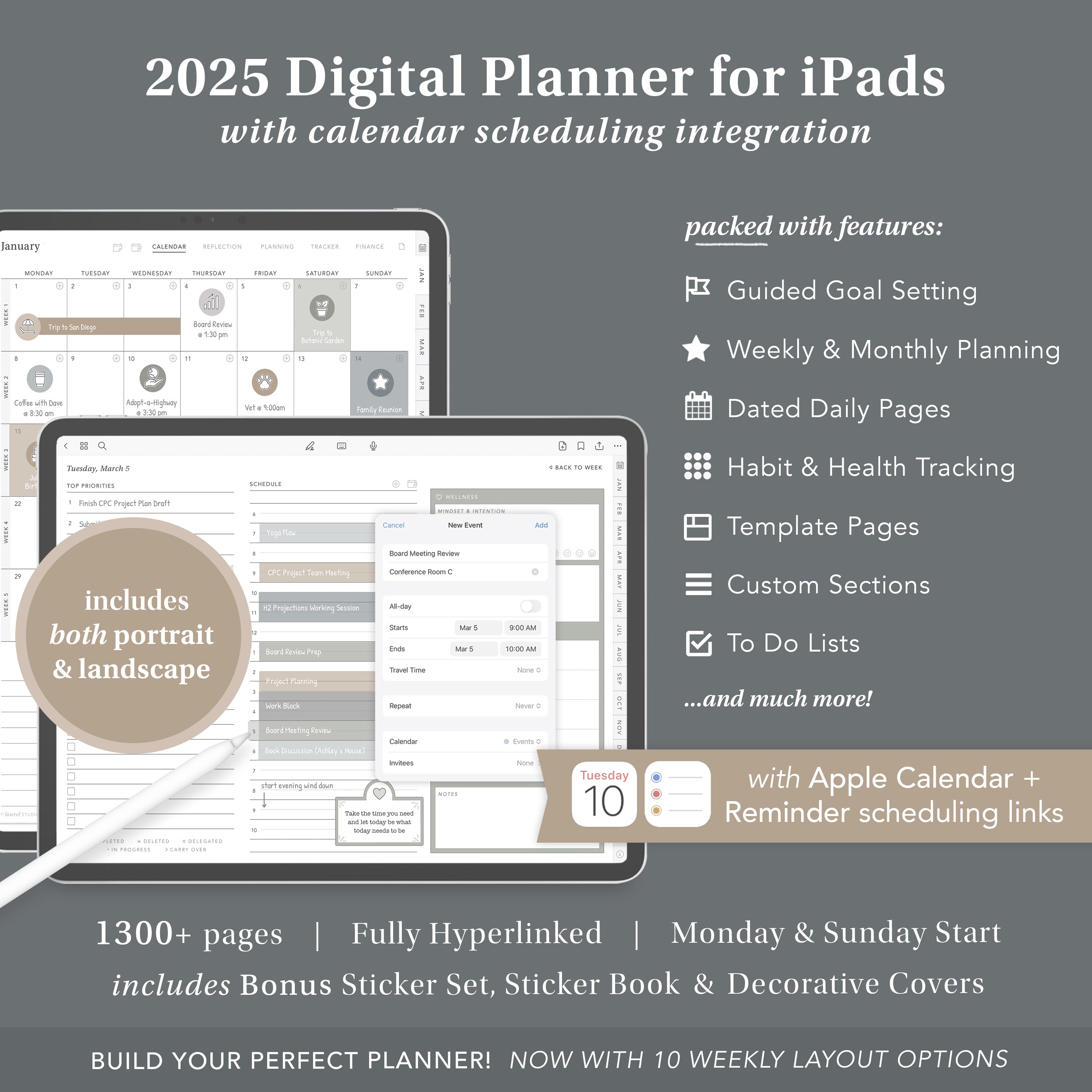 2025 Goal Planner with Calendar Scheduling Links for iPads
